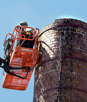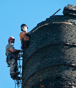 Проведение ремонта дымовых труб при помощи промышленных альпинистов