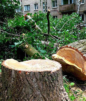Спиливание и валка деревьев выполняется разными методами в зависимости от состояния, толщины ствола дерева, плотности окружающей застройки.